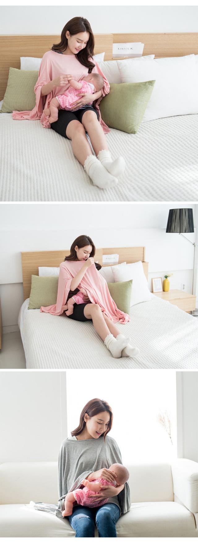 - ひざ掛けやストール、コーディネートのアクセサリーに活用できるポンチョ型授乳ケープ!