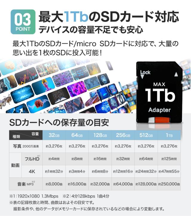 ・SD容量:最大1TB対応