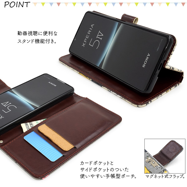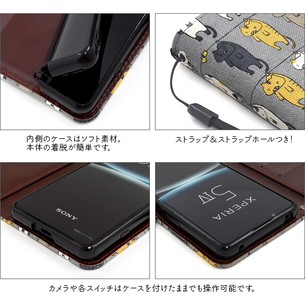スマホケース 猫柄 ねこ Xperia 5 IV SO-54C用 SOG09用 A204SO用 手帳型 保護 カバー かわいい ストラップ付 カード ポケット スタンド 2色展開 エクスペリア5 オシャレ 手帳型ケース