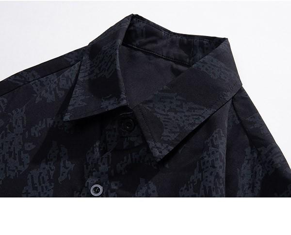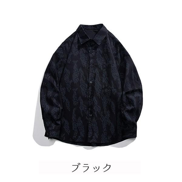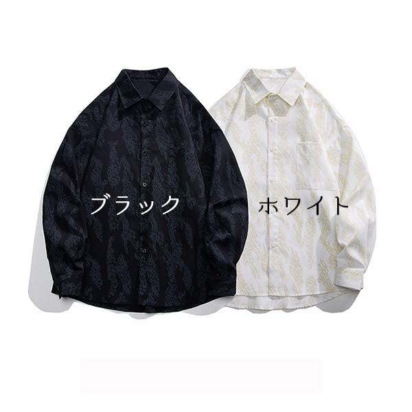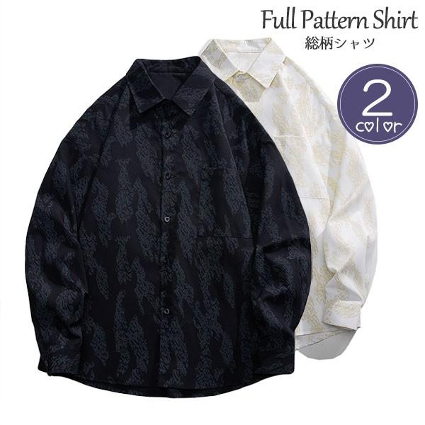 総柄シャツ 折り襟 前ボタン 春 新品 メンズ 男女兼用 ユニセックス 定番 ポケット付き ボタンダウン型 欧米風 ウエスタン モード系 ストリート系 長袖 カジュアル レギュラー ブラック ホワイト 大きいサイズ dk057x1x1la