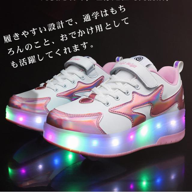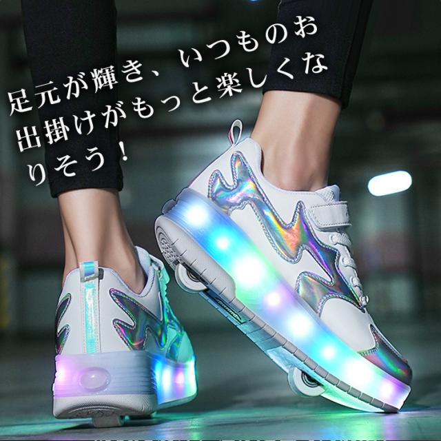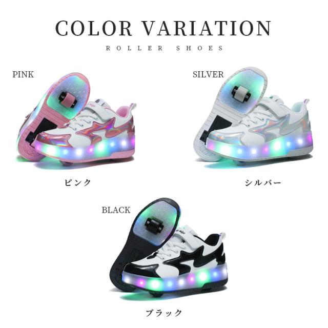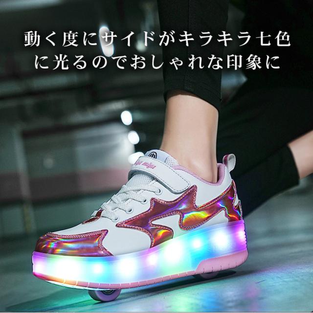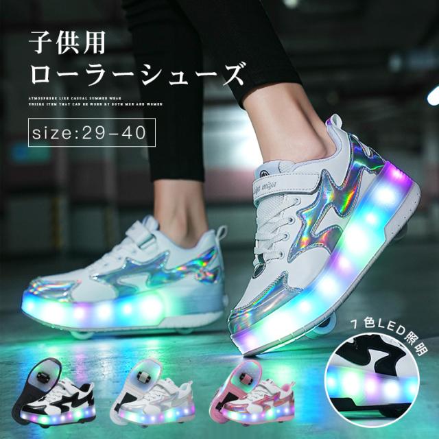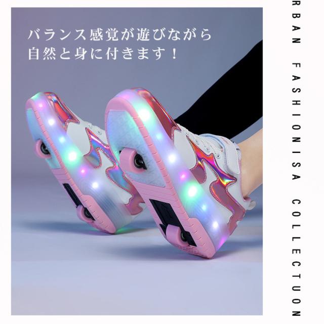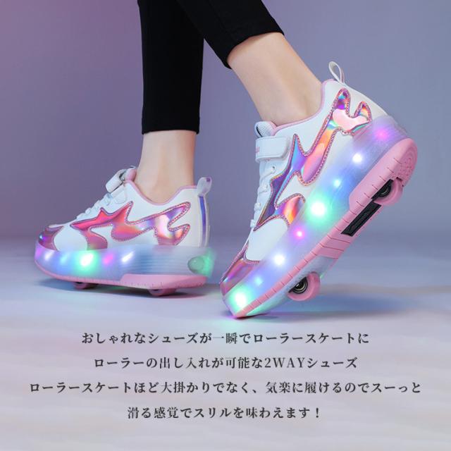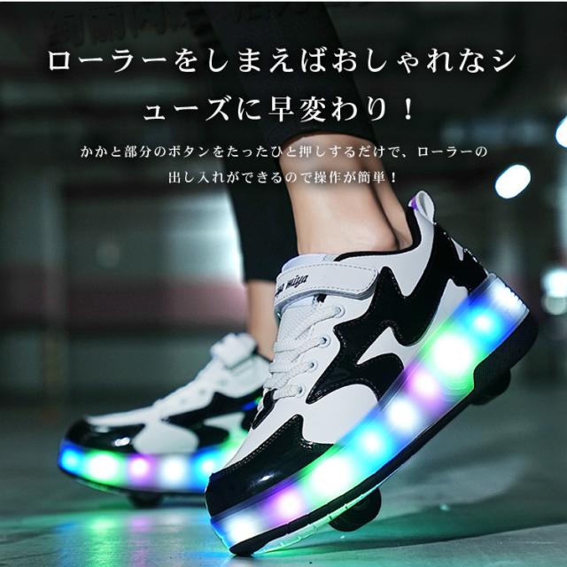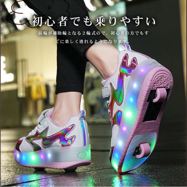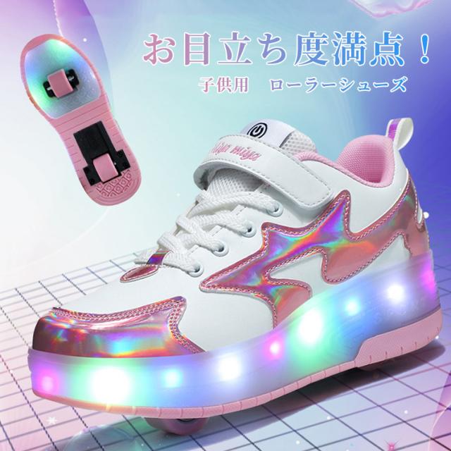 ローラーシューズ LED 子供 ひかるくつ 光る靴 発光シューズ クリスマス ハロウィーン ギフト 2輪 男の子 女の子 子供靴 ローラースケート USB充電式 360度光るLEDソール