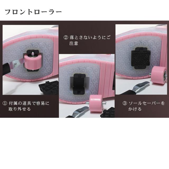 前後ダブルのローラーを搭載した2輪式。 前輪が補助輪となるので、初心者の方でもすぐに楽しく滑れるようになります。 慣れてきたら、前輪を取り外して後輪のみとする事もできます。 さらに、後輪は背面のボタンをワンプッシュするだけでソール内に収納可能。