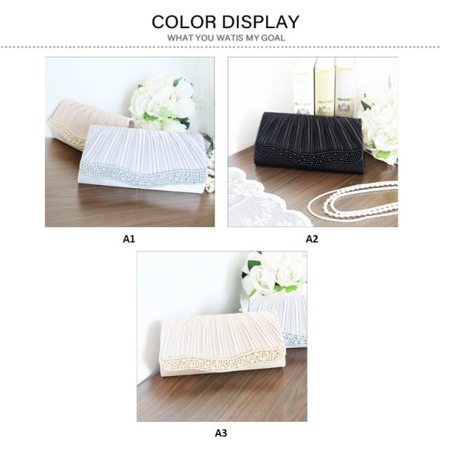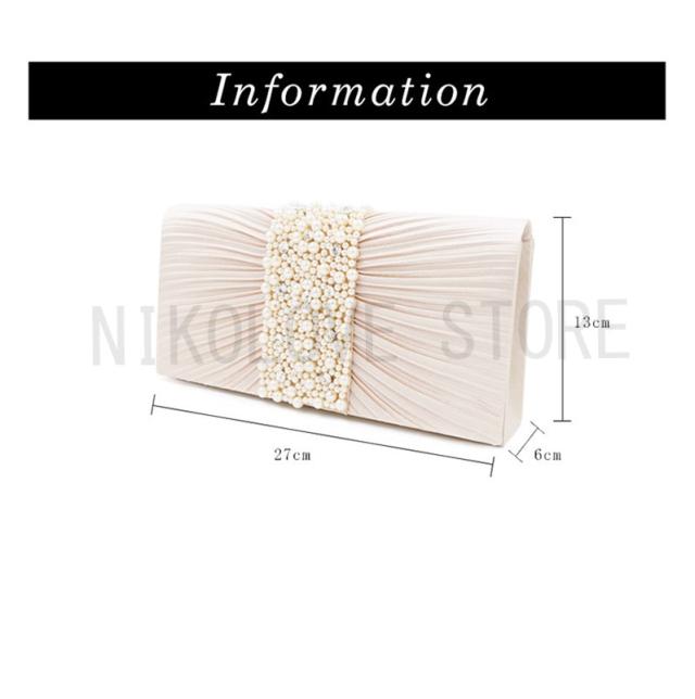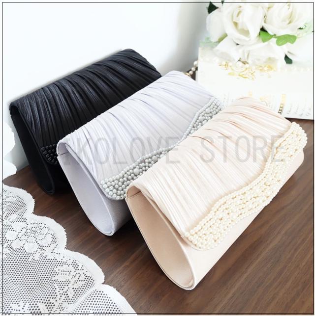 パーティーバッグ 入園式 クラッチ ビーズ 結婚式 プリーツ パーティー エレガント ビジュー サテン フォーマル ディナー 収納