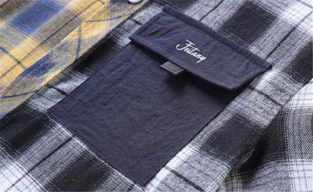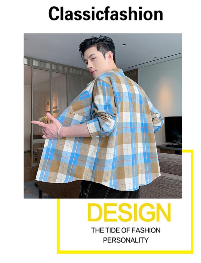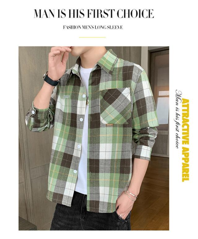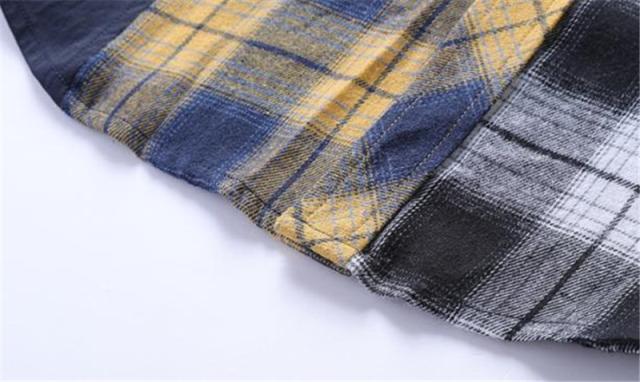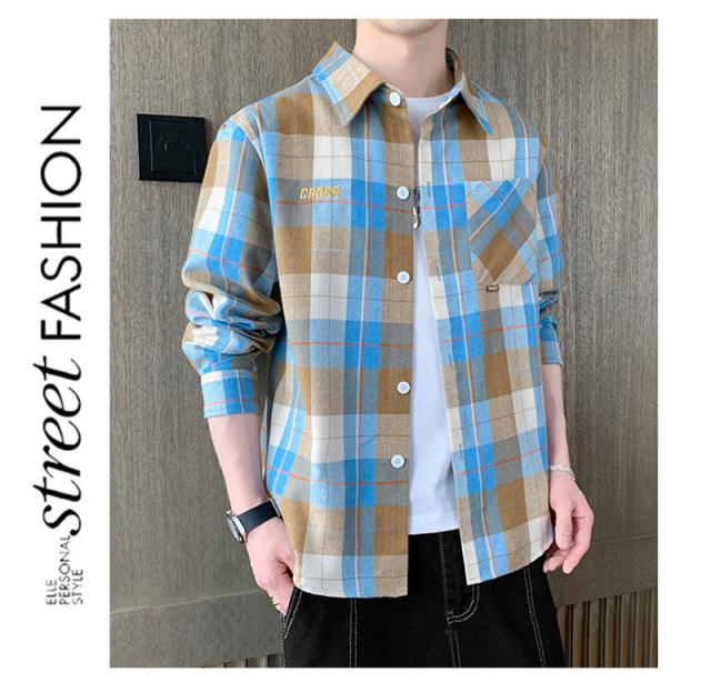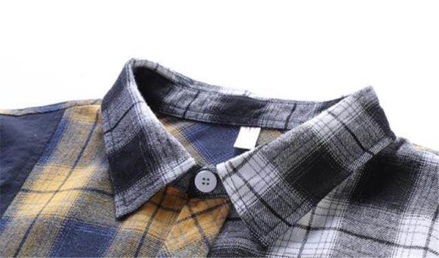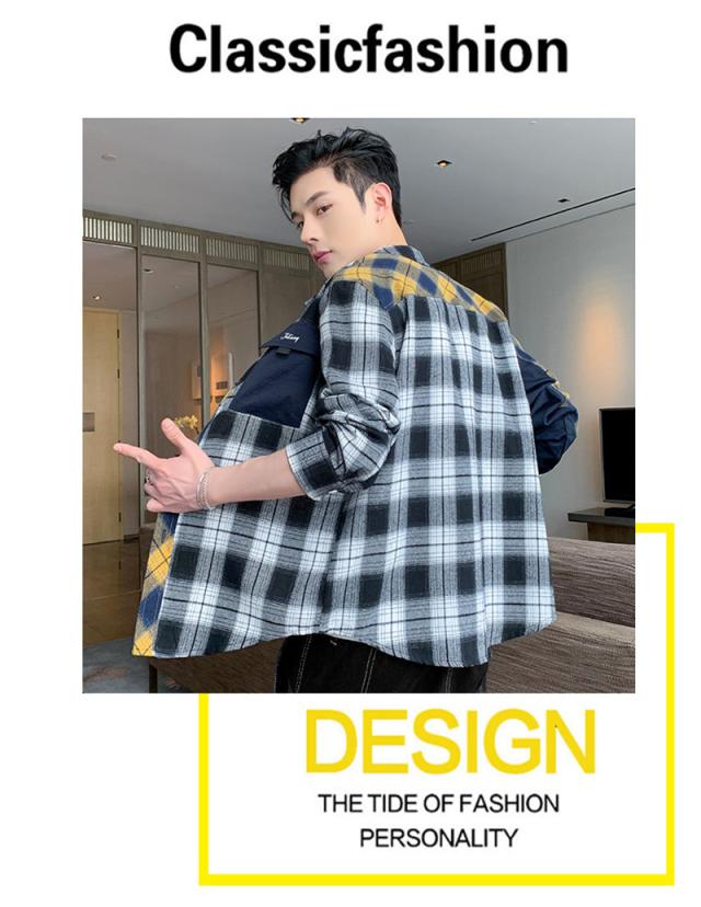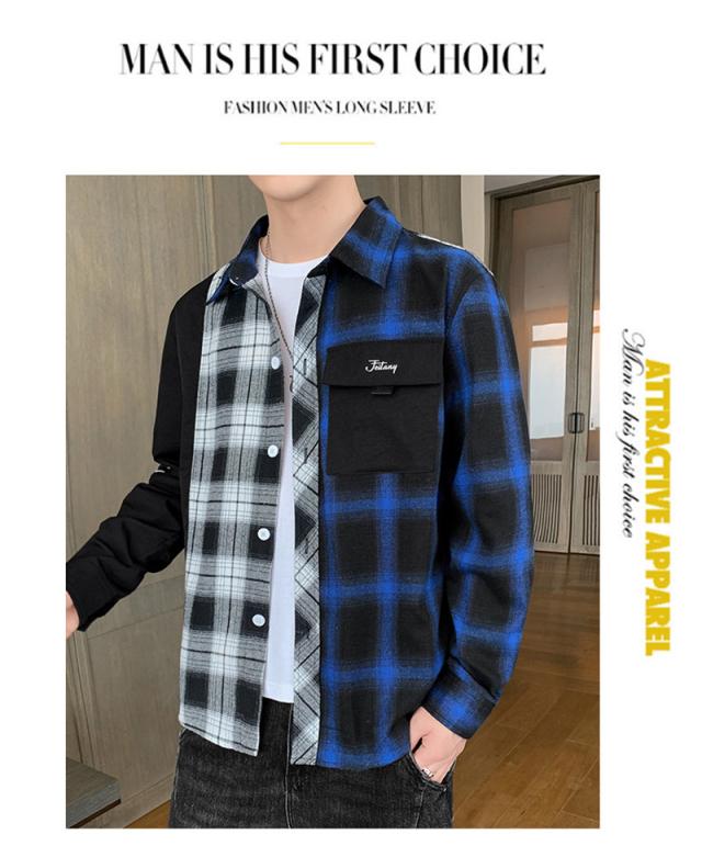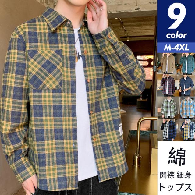 シャツ メンズ カジュアルシャツ 長袖 綿 ブラウス チェック柄 ボタンダウン 開襟 切り替え 大きいサイズ カラー配色 細身 春