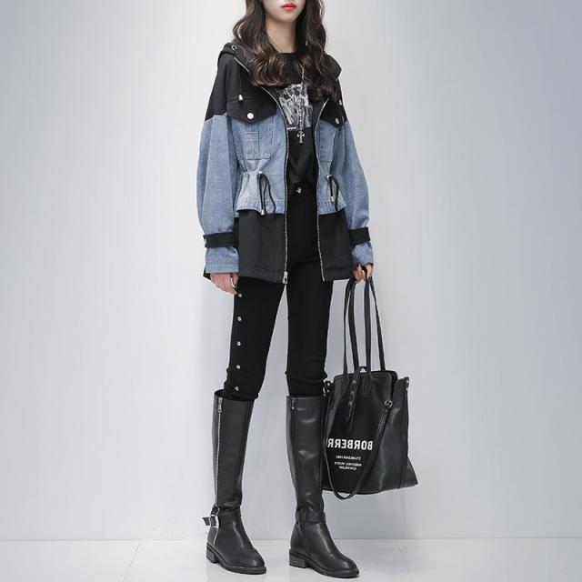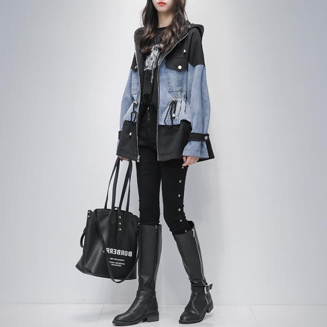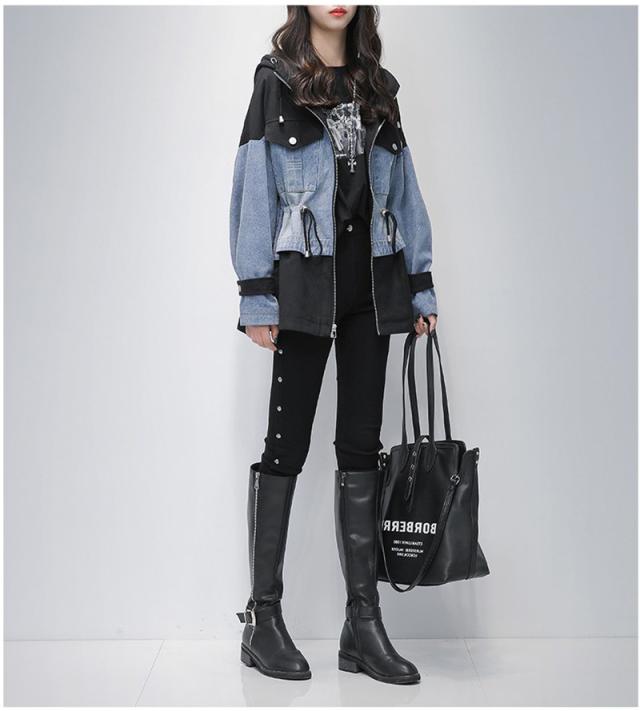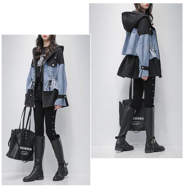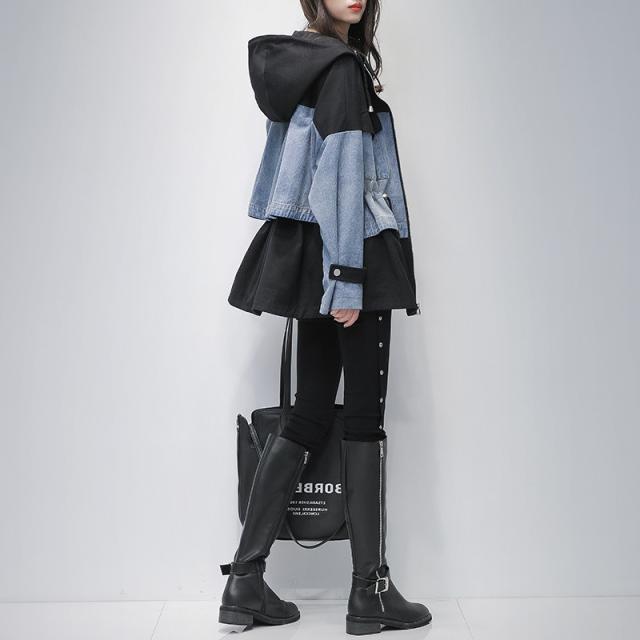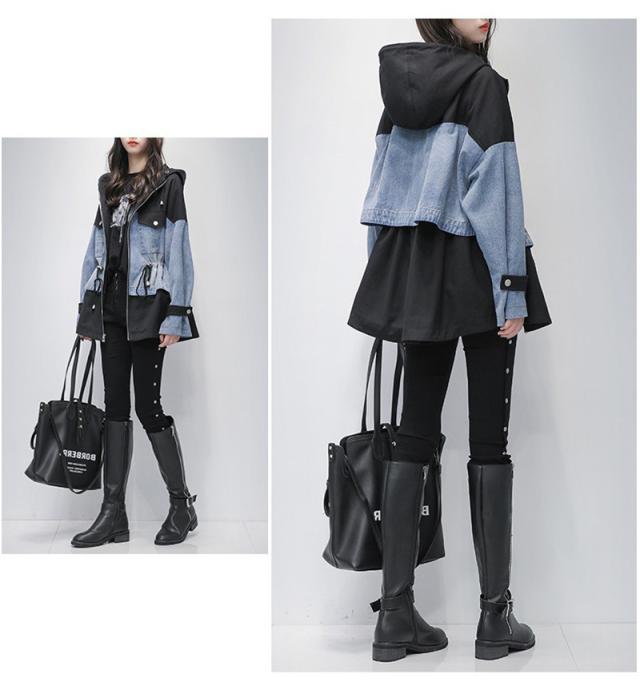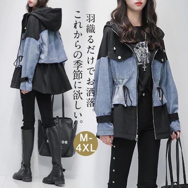 デニムジャケット 春コート レディース デニムコート 切り替え ジップアップ パーカー 大きいサイズ ミディアム丈 春秋 オシャレ