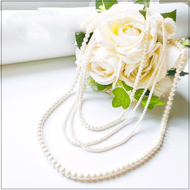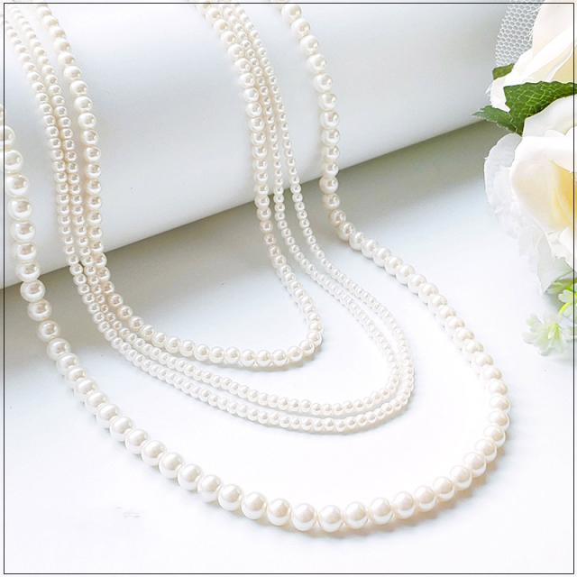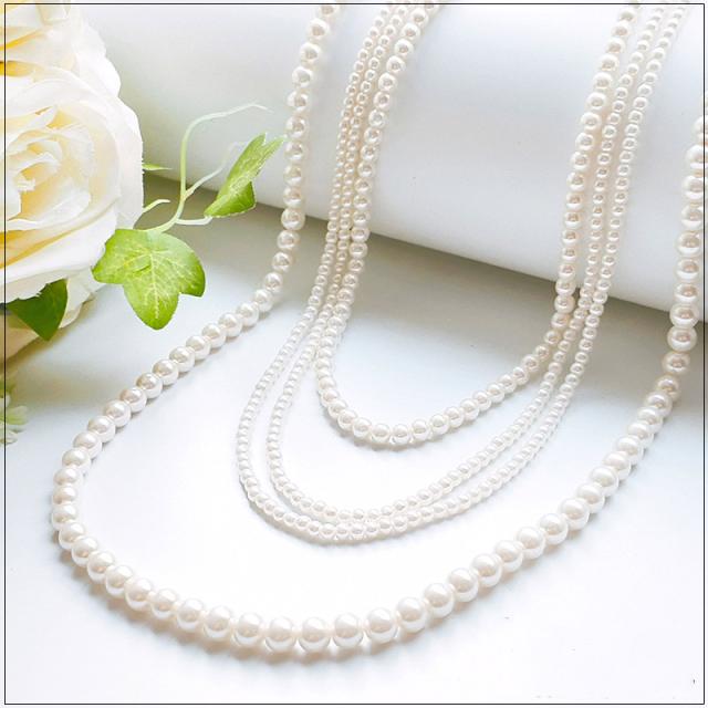 ネックレス パール 結婚式 同窓会 チェーン 3連 同窓会 謝恩会 ウェディング キャバ ロング 二次会 成人式 卒業式 入学式