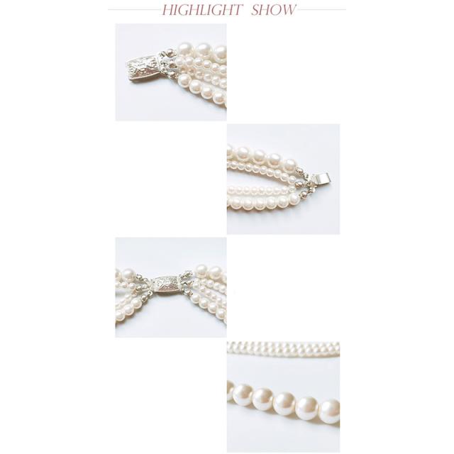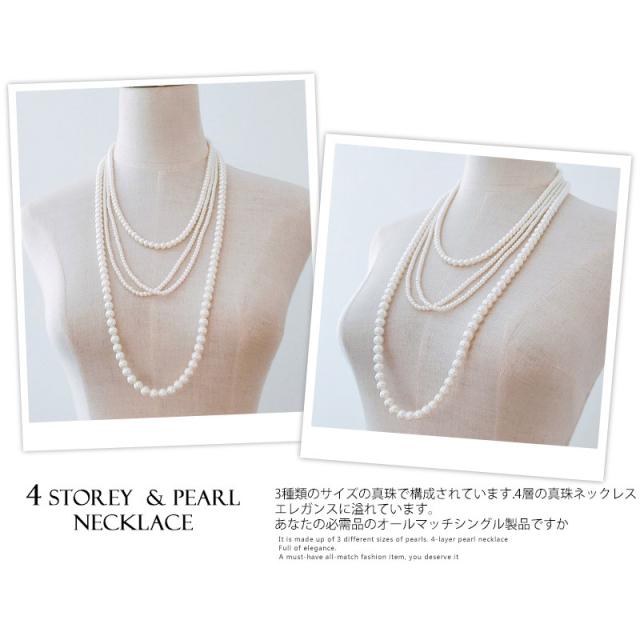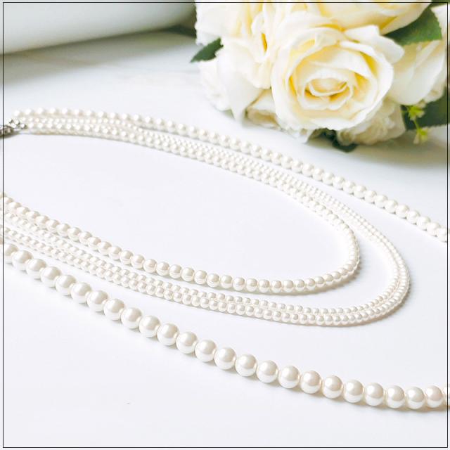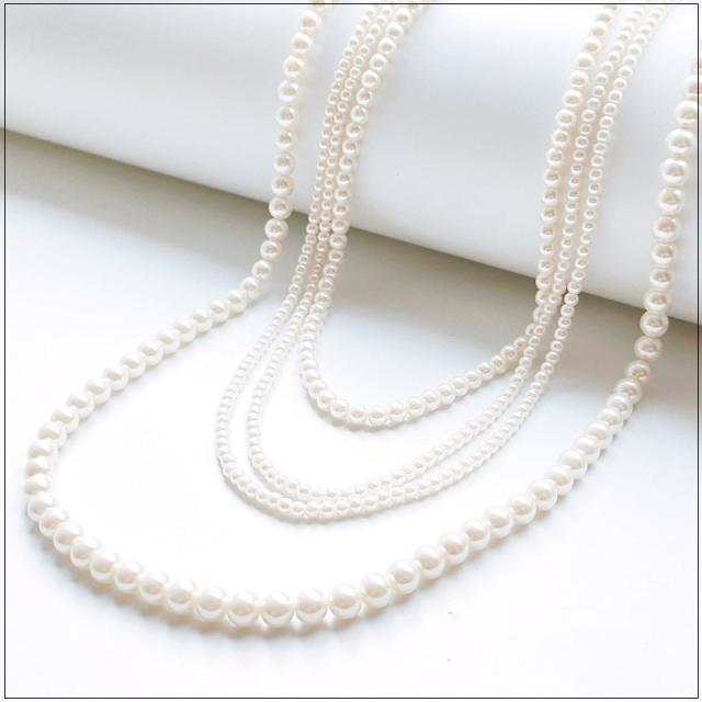 3連のパールで顔周り華やかに、ロングフェイクパールネックレス♪