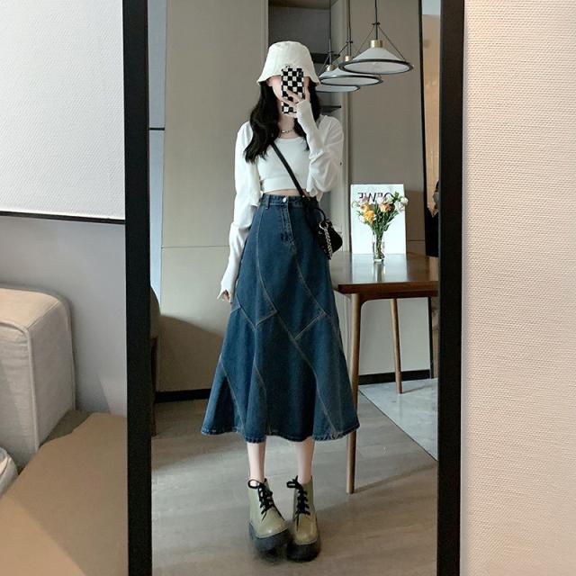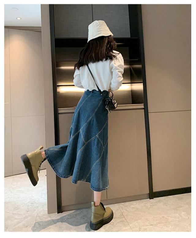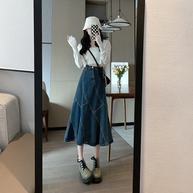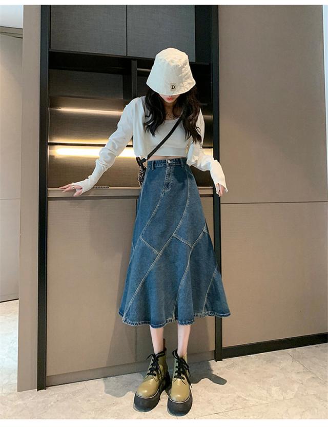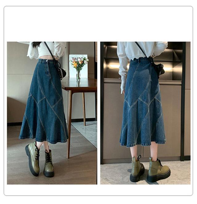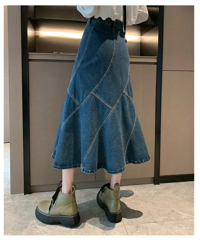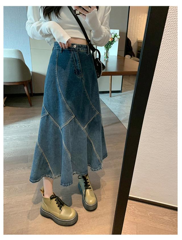 スカート レディース 春夏コーデ ハイウエスト ロング丈 デニムスカート マーメイドスカート スプライシング おしゃれ ファッショ
