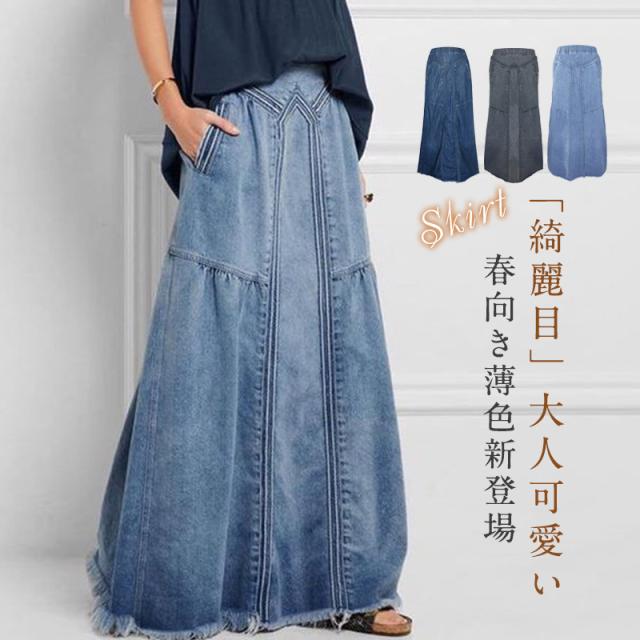 スカート レディース デニムスカート ボトムス おしゃれ ロングスカート デニム 春夏コーデ ウエストゴム ボトムス カジュアル