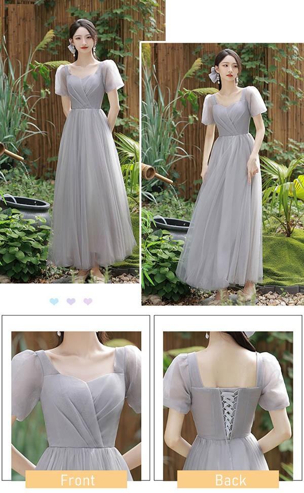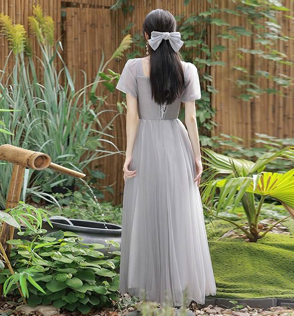 【レビュー投稿で+5%還元】ブライズメイド ドレス 大人 ピアノ 発表会 ロングドレス ミモレ丈 演奏会 結婚式 母親 ピアノ発表会 グレー 袖付き ワンピース 半袖 演奏会ドレス パーティードレス イブニングドレス ロング丈 大きいサイズ 小さいサイズ フォーマル