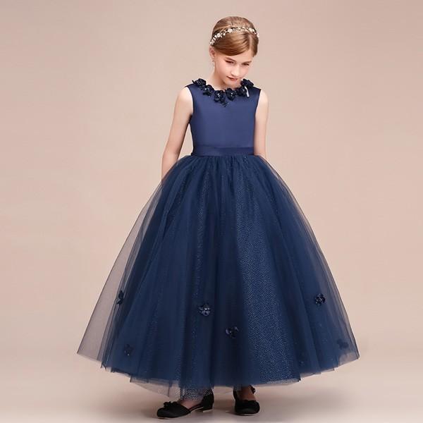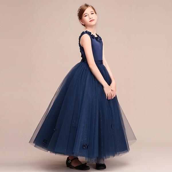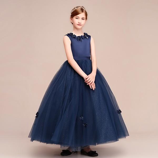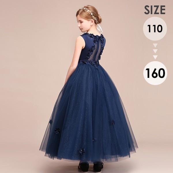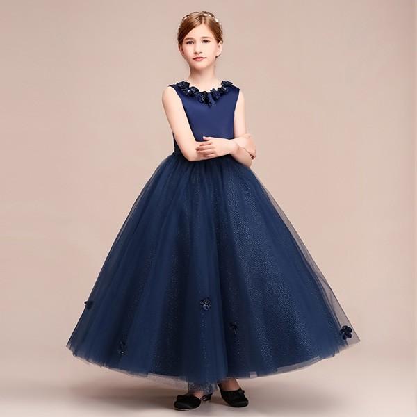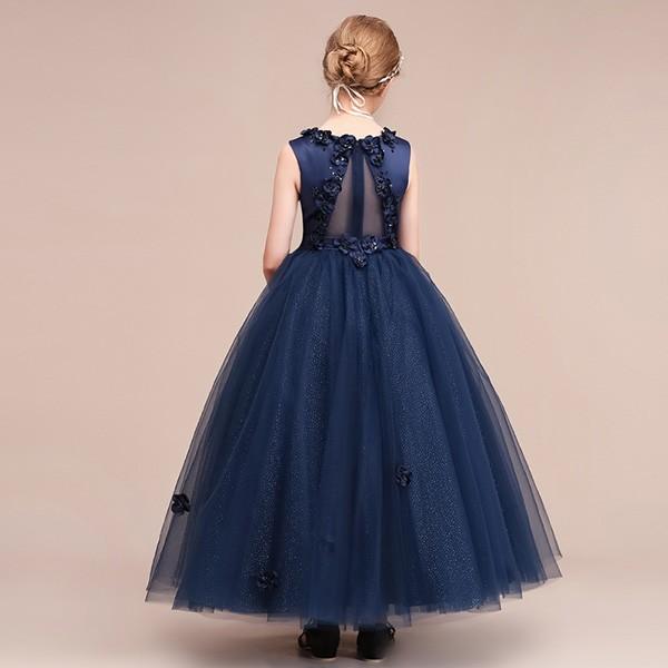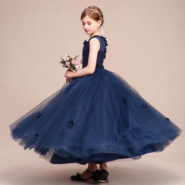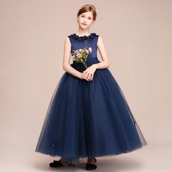 【レビュー投稿で+5%還元】ピアノ発表会 ドレス 中学生 160 ワンピース キッズ 女の子 キッズドレス ノースリーブ パーティー ロング丈 子供ドレス 演奏会 フラワーガール ベールガール リングガール プリンセスドレス ブライダル フォーマル 七五三 可愛い お姫様 ネイビー