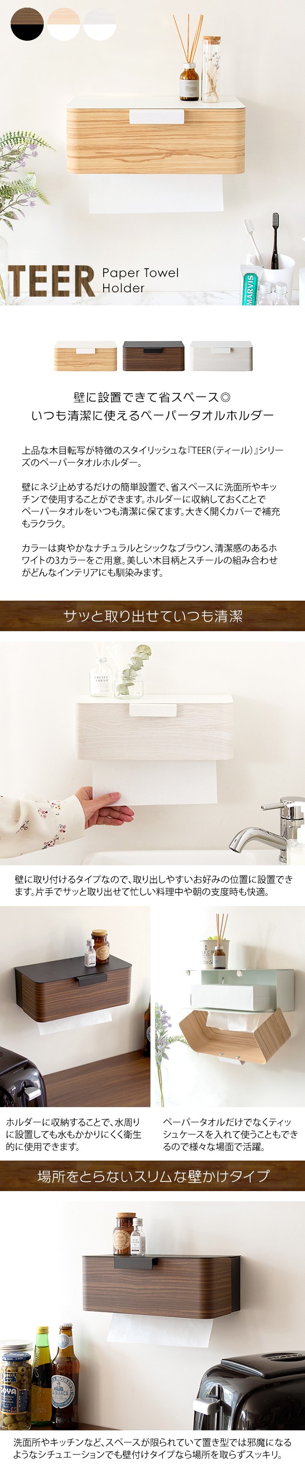 ホルダーに収納しておくことでペーパータオルをいつも清潔に保てます。