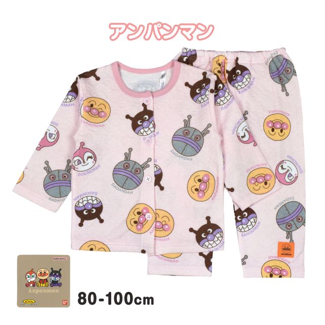 パジャマ 長袖 前開き ベビー キッズ 女の子 アンパンマン お尻マチ付きピンク