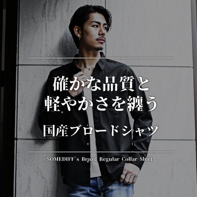 SOMEDIFF(サムディフ)『国産ブロードシャツ』【国産ブロードシャツ】■Design/デザイン抗菌加工で長く着用を楽しめるレギュラーシルエットのブロードシャツ。カジュアルでもフォーマルでも楽しめるのがブロードシャツのメリット。そのブロードシャツにナノファイン加工を施し、抗菌作用を持たせたことで、長く愛用できる一着に。右前裾部分にはSOMEDIFFのオリジナルメタルピスネームを配置。確かな素材と品質で仕上げたシャツは纏うだけでオトナの品格を演出してくれる。■Material/素材感綿100%を使用し、軽やかでさらりとした肌触りが特徴。ナノファイン加工を施し、菌の増殖を抑え、長く楽しめる品質の高さが特徴。