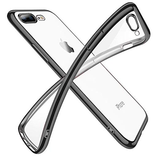 iphone8plus ケース iphone7plus ケースクリア 透明 tpu シリコン メッキ加工 スリム 薄型 5.5インチ スマホケース 耐衝撃 ストラップホール 黄変防止 一体型 人気 携帯カバー ブラック