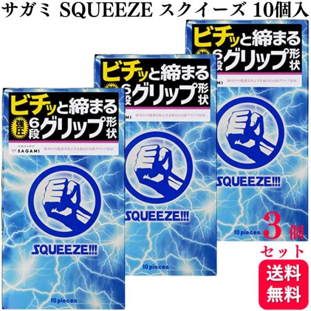 3個セット サガミ SQUEEZE スクイーズ シックスフィットV 10個入 天然ゴム ラテックス製 強圧6段グリップ コンドーム 避妊具