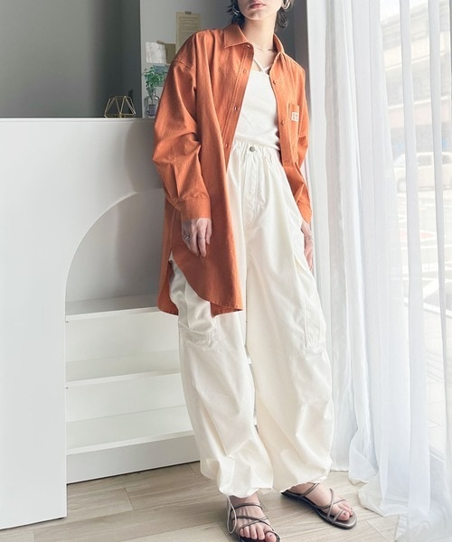彼シャツ風マニッシュテイストにビンテージ感のある素材が大人の抜け感も演出。