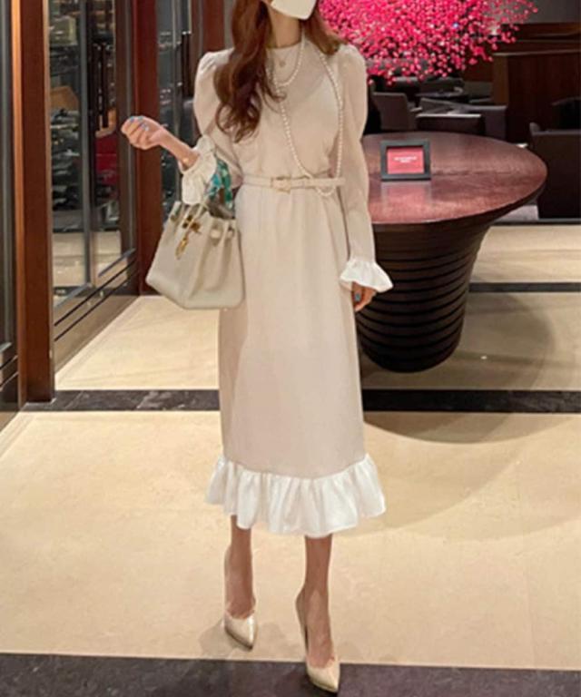 【Jasmine】フリルドッキング柔らかロングワンピース