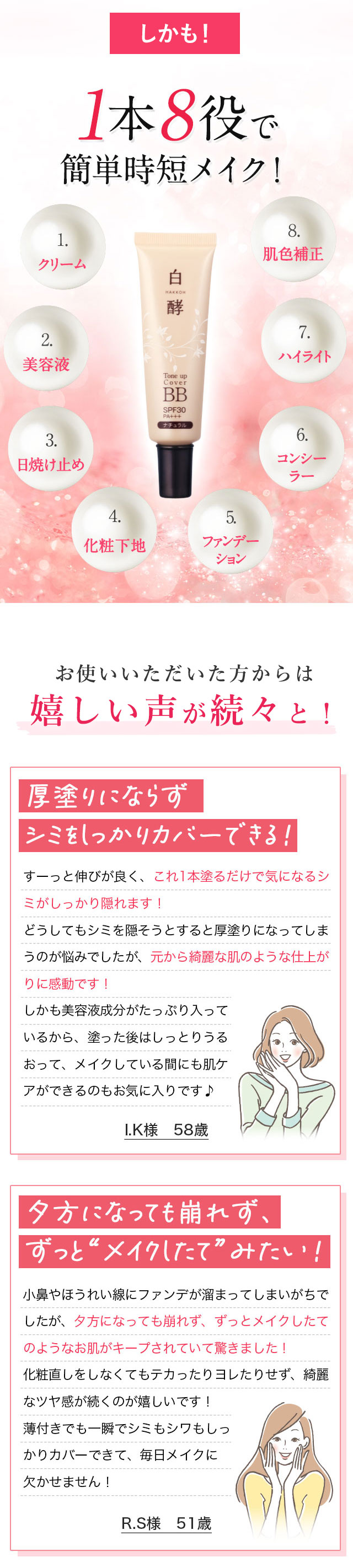 BBクリーム ファンデーション 白酵 トーンアップカバーBB 30g 1本 SPF30 PA+++