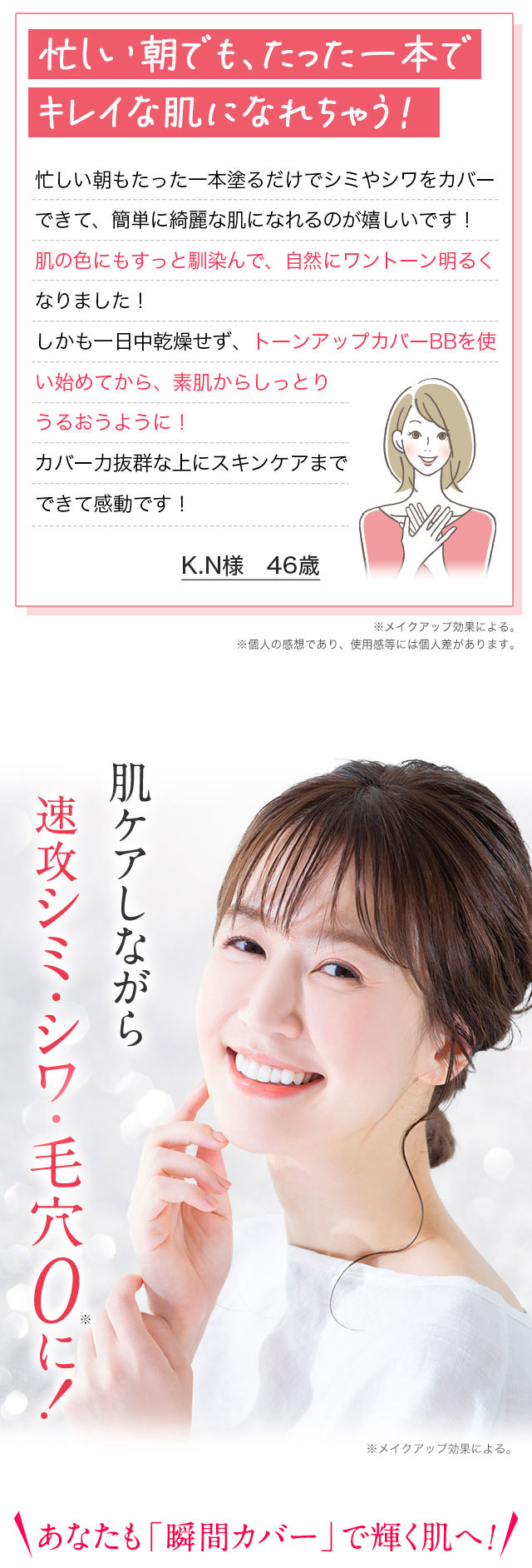 サッと塗るだけで シミ そばかす 毛穴 シワ しっかり隠す 1本で8役オールインワンBBクリーム!薄付きなのに優れたカバー力 美容液成分が全体の90%で美肌キープ 高いUVカット力 5つの無添加