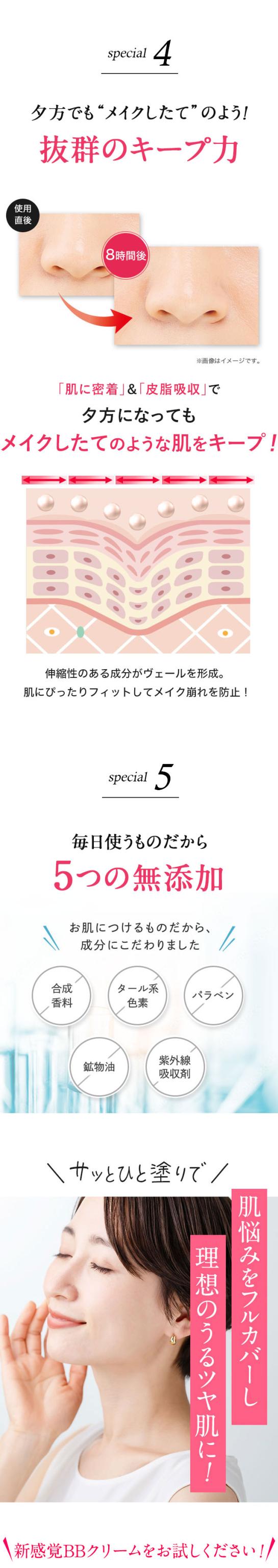 | BBクリーム,ファンデーション,SPF30,PAスリープラス,肌,シミ,しみ,そばかす,ソバカス,毛穴,隠し,かくす,消す,カバー,発酵プラセンタ,コラーゲン,ヒアルロン酸,オールインワン,ベースメイク,1本8役,美容液,日焼け止め,化粧下地,コンシーラー,クリーム,薄付き,美肌メイク,無添加,パラベンフリー,合成香料不使用,タール系色素不使用,鉱物油フリー,紫外線吸収剤フリー |