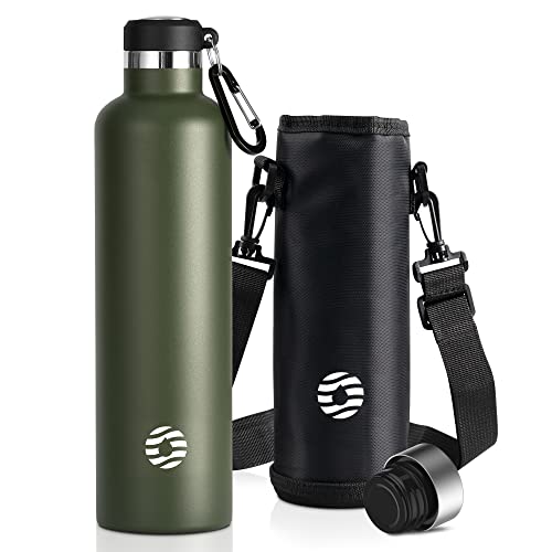 FJbottle 水筒 1リットル 真空断熱 保温 保冷 第2世代 ステンレスボトル 直飲み スポーツボトル スポーツ飲料対応 水筒カバー 洗浄用スポンジ付き 男の子 女の子 大人 子供 グリーン