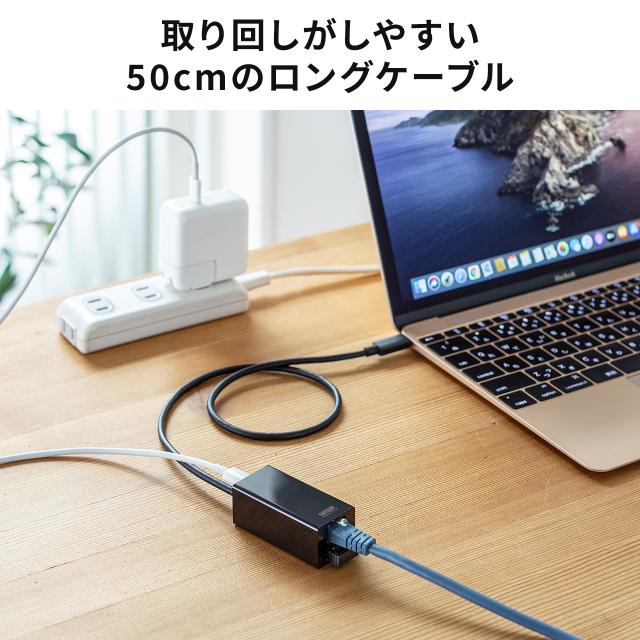 ●USB Type-CポートをLANポートに変換するアダプタです。●LANポートがないパソコンでもType-Cを変換するので有線でLANを接続したいときに最適です。