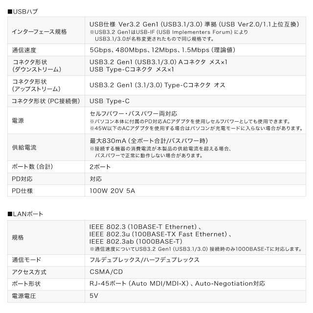 ※通信速度についてUSB3.2 Gen1(USB3.1/3.0)接続時のみ1000BASE-Tに対応します。