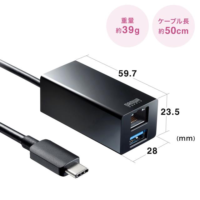 ⇒ご購入の前にご確認下さいUSB-CからLANへ変換できる変換アダプタケーブル一体型。ギガビットLAN対応で、USB-C2ポートハブとしても使用できるUSBハブ。小型。Win/Mac対応。