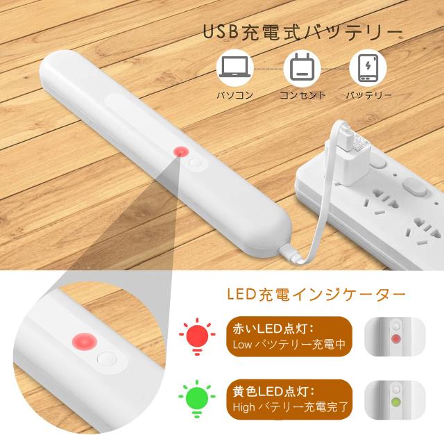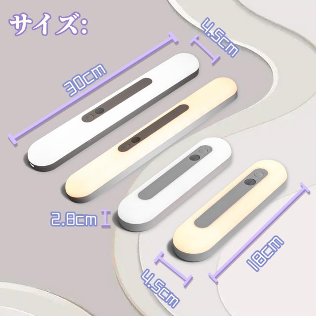 人感センサーライト センサーライト 人感ライト 自動点灯消灯 室内ライト フットライト USB充電式 18CM 電球色 昼光色 マグネット式 4個