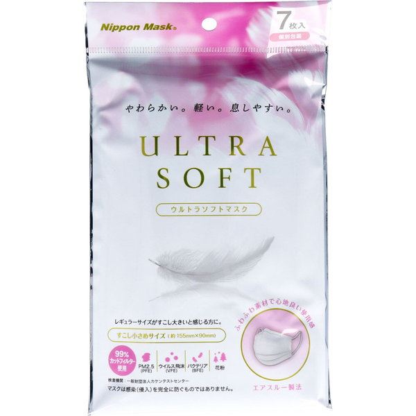 マスク 不織布 ウルトラソフトマスク すこし小さめサイズ 個別包装 7枚入