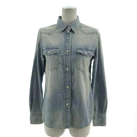 【中古】スローブ イエナ SLOBE IENA シャツ デニム 長袖 ユーズド加工 コットン ブルー系 青系 レディース
