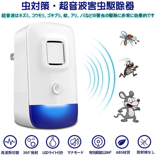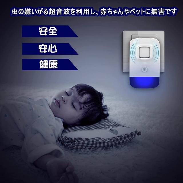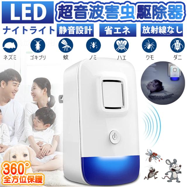 害虫駆除機 超音波式 LEDナイトライト 虫除け器 蚊よけ器 超音波 強力 蚊取り 省エネ 静音 無毒 無臭 アリ ノミ ハエ 子供やペットに安心