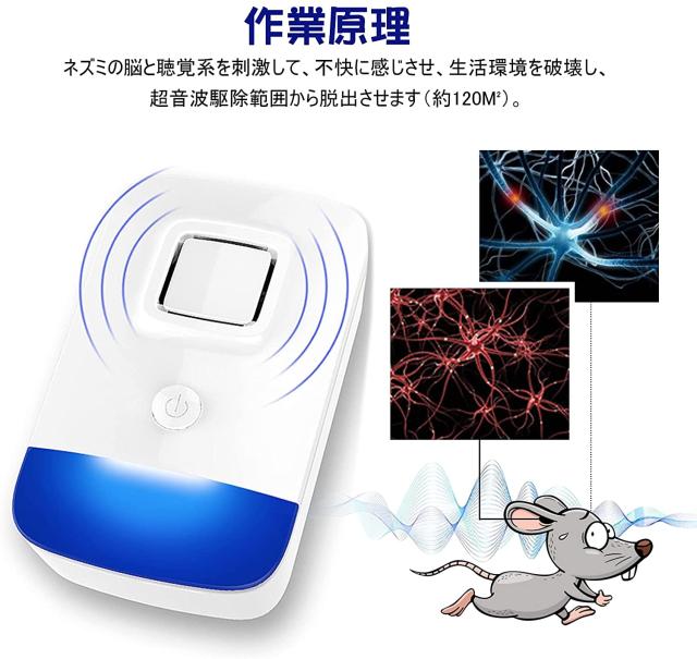 【ねずみ駆除 超音波 強力】ネズミやゴキブリなどが嫌がる超音波を利用して、25-85HZの周波数が自動的に変換できます。有効範囲は80-120平方メートルです。ネズミ、コウモリ、ゴキブリ、蚊、アリ、ノミの駆除に非常に効果的です。