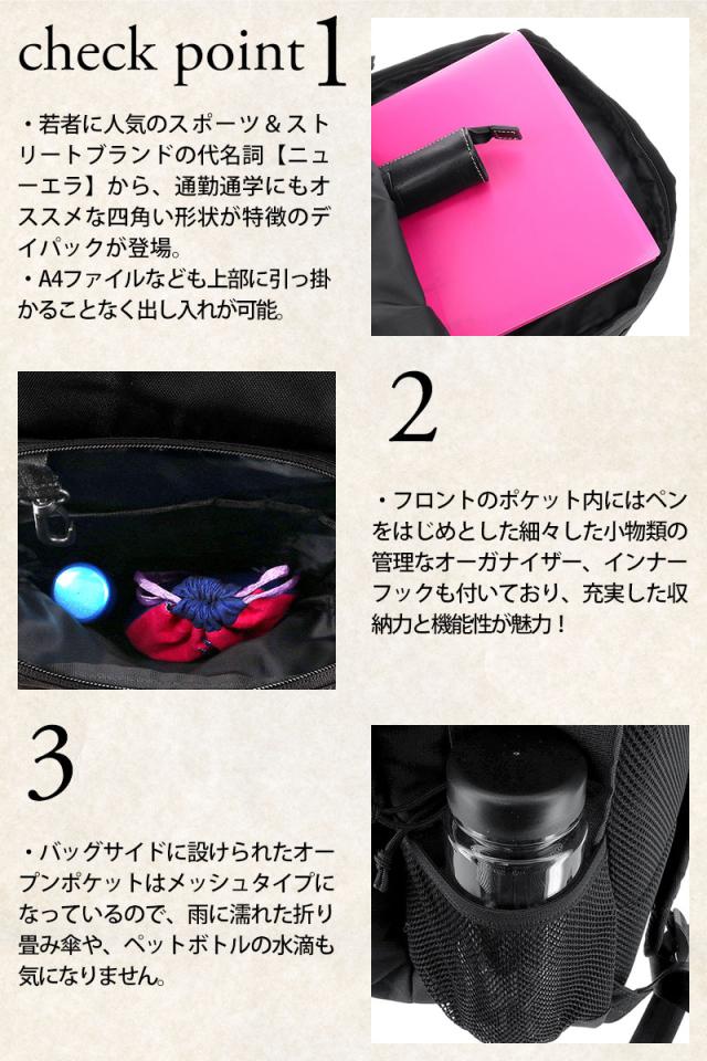 | 備考 | 【メイン開閉】ダブルファスナー 外側/ メッシュファスナーポケット×1 ファスナーポケット×1(オープンポケット×1、ペン挿し×3、キーフック×1) オープンポケット×1 メッシュポケット×1 内側/ オープンポケット×1 ー POINT ー ・外側にメッシュポケットを配備 ・外側のポケット内にインナーフックを配備 ・ラップトップPCを保護する収納ポケット搭載 ・ドリンクなどの携帯に便利なサイドポケットを搭載 キーワード: 10代 20代 30代 白 黒 カーキ グリーン イエロー 黄色 緑 プリントロゴ ストリート カジュアル スポーツ ハイキング 旅行 バイク 自転車 部活 スクールバッグ 大容量 大きめ 高校 入学祝い 就職祝い 自分用 ご褒美 誕生日 プレゼント ギフト おすすめ オススメ ラッピング ラッピング無料 メンズ 彼氏 レディース 彼女 お揃い ペア 男性 女性 通勤 通学 ビジネス 学生 ブランド ロゴ 30l ポイント消化 ニューバッグワカマツ ニューバックワカマツ | ||