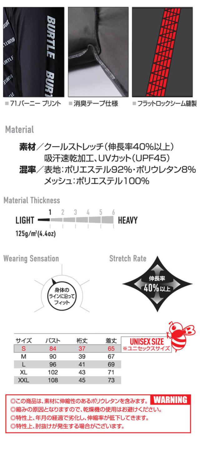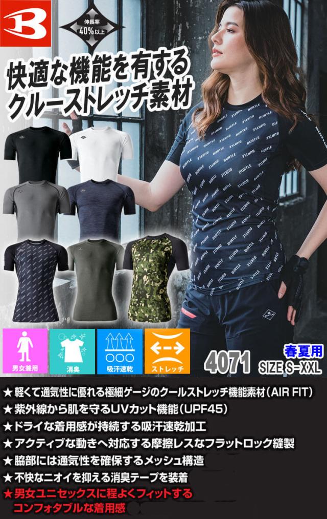 [即納]BURTLE バートル 春夏 半袖インナー 半袖エアーフィット ユニセックス 4071 コンプレッションインナー