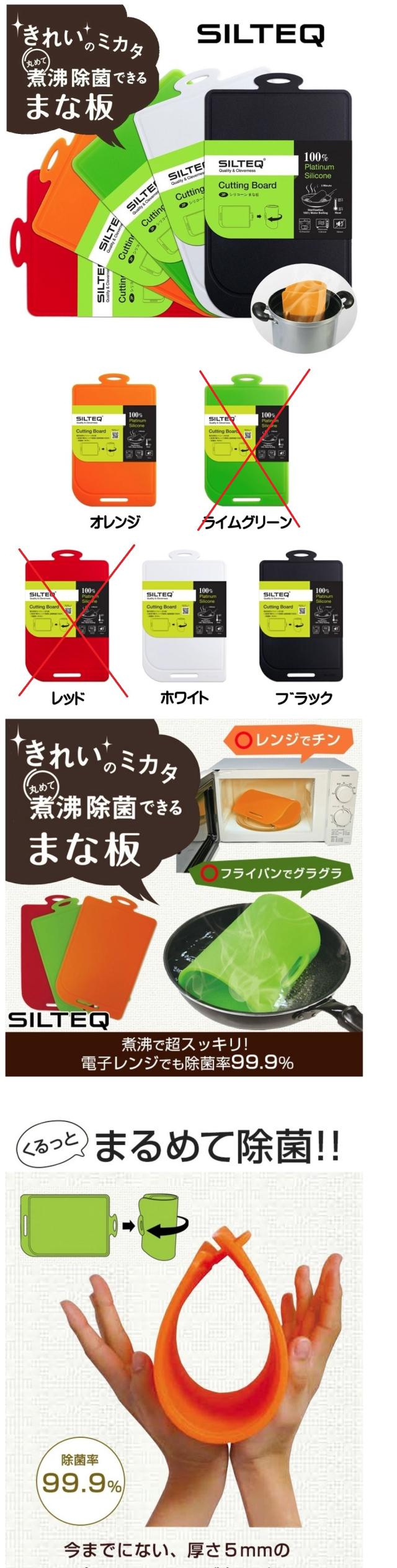 SILTEQ きれいのミカタ 丸めて煮沸消毒できるまな板 Mサイズ プラチナシリコン 全3色(オレンジ、ブラック、ホワイト)