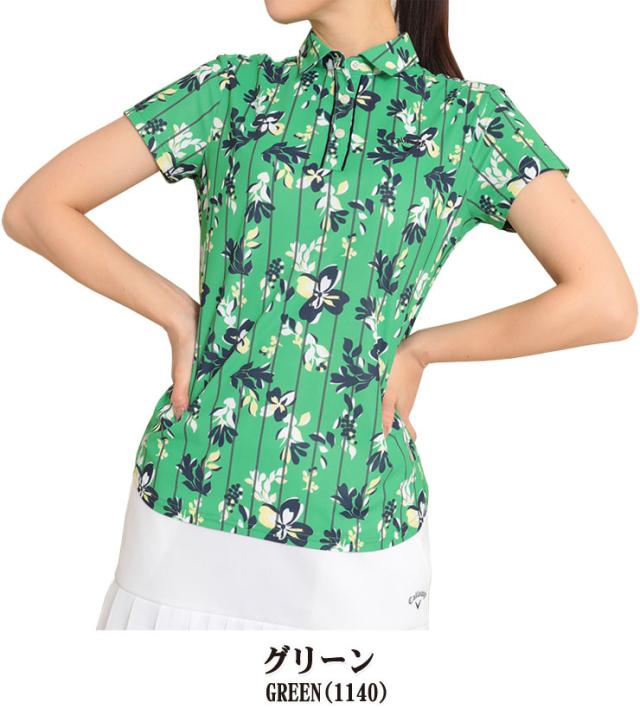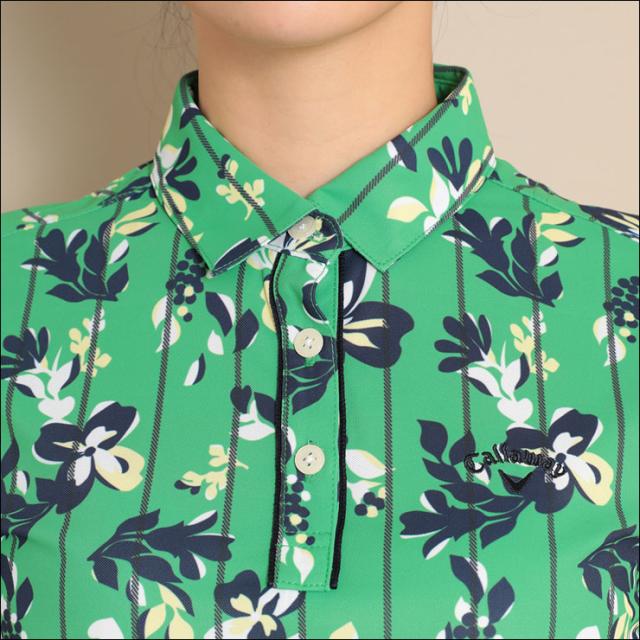 キャロウェイ レディース ゴルフウェア ストライプフラワープリント コンパクトカノコ 半袖 ポロシャツ C23134204 2023年春夏モデル S-LL