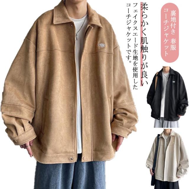 送料無料 ジャケット メンズ ジャケット フェイクスエード アウター 長袖 ウインドブレーカー ライトアウター ルーズ オーバーサイズ 春アウター 裏地付き アメカジ キレイめ カジュアル シンプル ストリート系 春 春服 秋 秋服