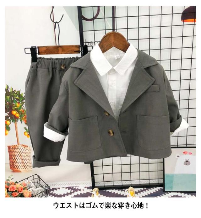 2点セット 子供服 フォーマルスーツ 男の子 子供スーツ 小学生 キッズ ベビー フォーマル キッズスーツ 七五三 男の子 スーツ 長袖 ジャケット ロング パンツ 2点セット ウエストゴム おしゃれ 子供服 卒業式 入学式 発表会 入園式 結婚式 スーツ 90/100/110/120/130