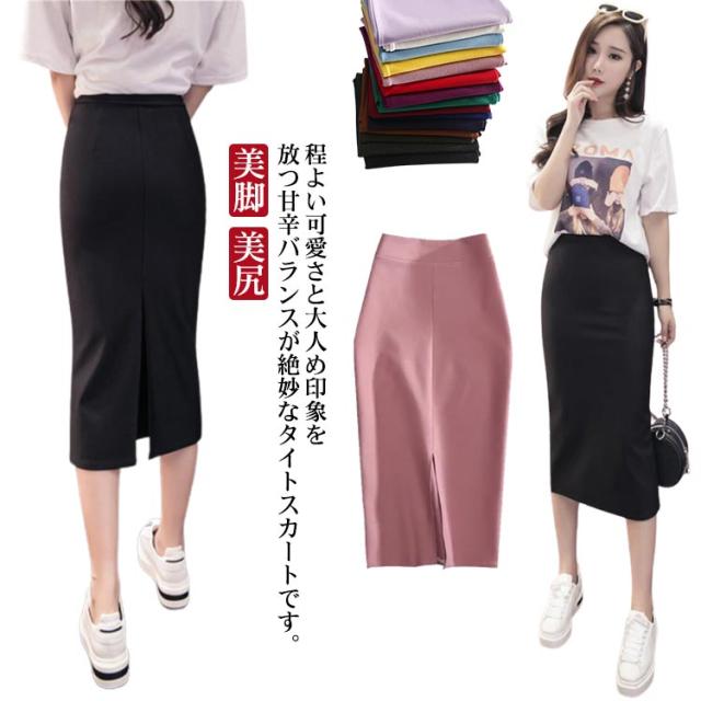 全11色 スカート タイトスカート ハイウエストスカート ロングスカート レディース ボトムス ロング丈 ストレッチ ハイウエスト 無地 美脚 美尻 セクシー 着痩せ カジュアル フェミニン きれいめ オフィス 通勤