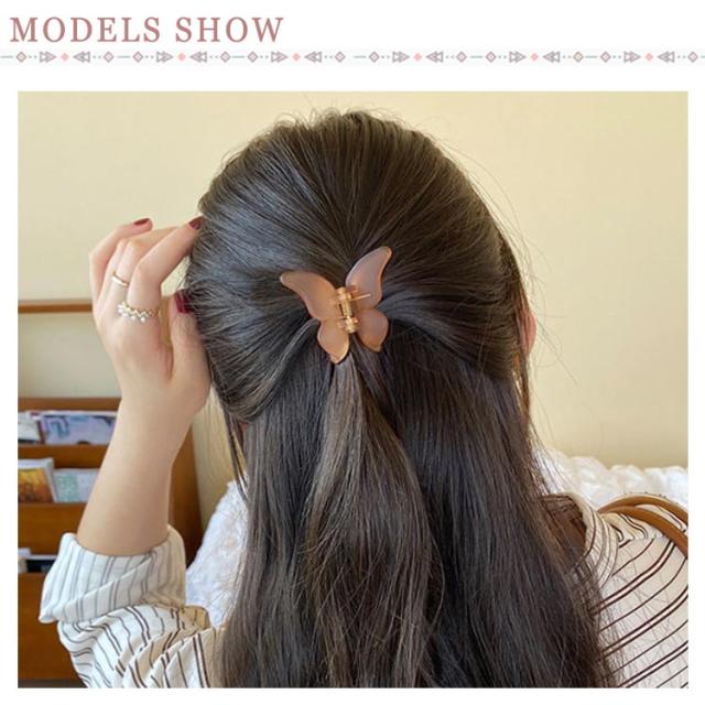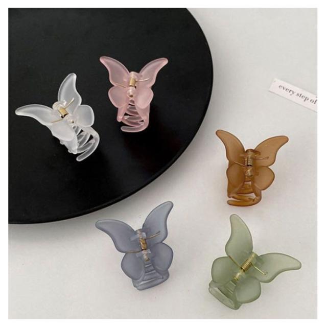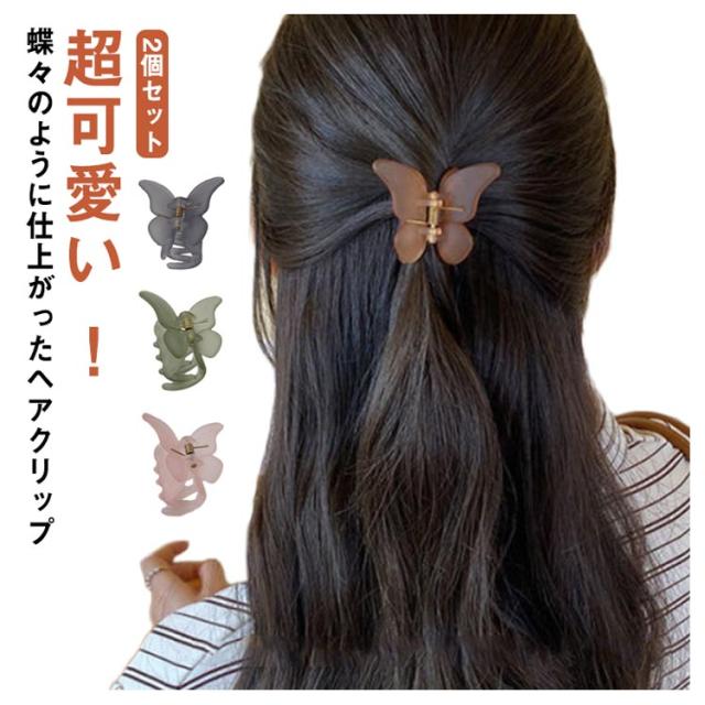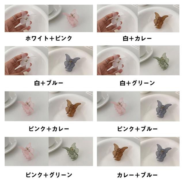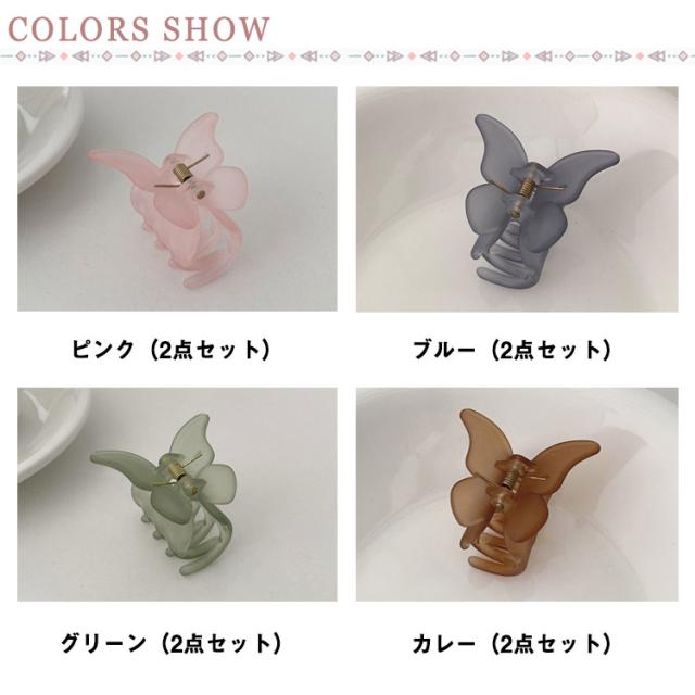 送料無料 2個セット ヘアクリップ ミニ 超軽量 マット クリア まとめ髪 前髪 蝶々 バンスクリップ 小さめ ヘアアレンジ ヘアアクセサリー しっかり かわいい ホワイト パープル グリーン 通勤 オフィス きれい 大人可愛い 髪飾り サイド