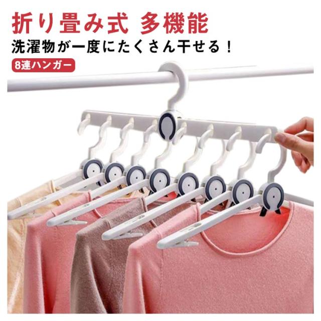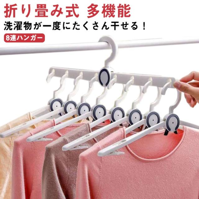 ハンガー 洗濯物ハンガー 8連ハンガー 折り畳み式 多機能 室内屋外兼用 省スペース 取り外し可能 コンパクト 360度回転 携帯便利 収納便利 滑り止め 家庭用 多機能 送料無料