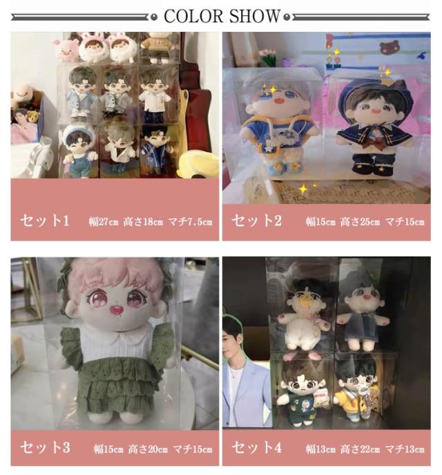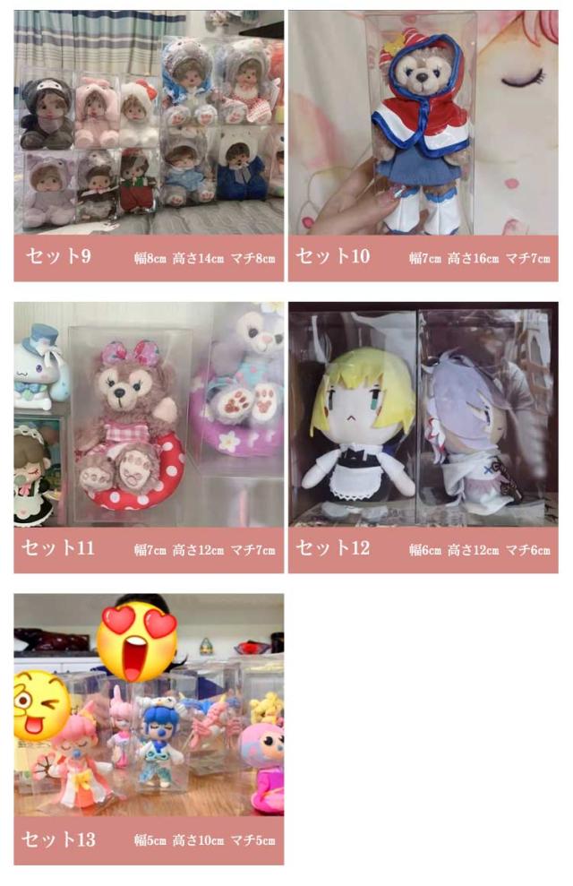 | 個包装タイプのぬいぐるみコレクションケース。【5個セット】【13種サイズあり】 中身がひと目でわかる透明ケースなのでお目当てのおもちゃが一目で取り出し出来る優れものです! 使わない時は、折りたたんでコンパクトに収納でき、保管も邪魔にならない。 防水防塵プラスチックの素材製で大切なぬいぐるみをカビ、チリ、ホコリから守ります。 素材がしっかりしているので、長くご愛用いただけます。 | |