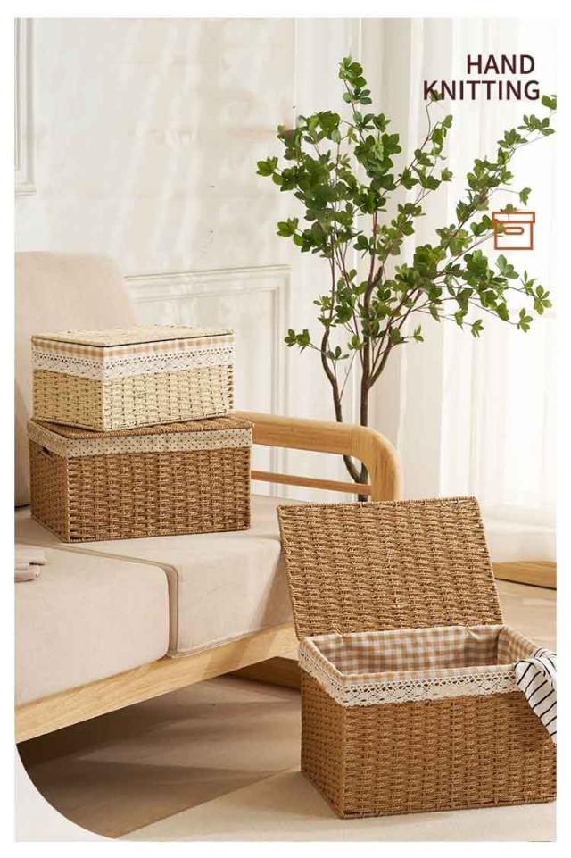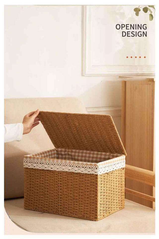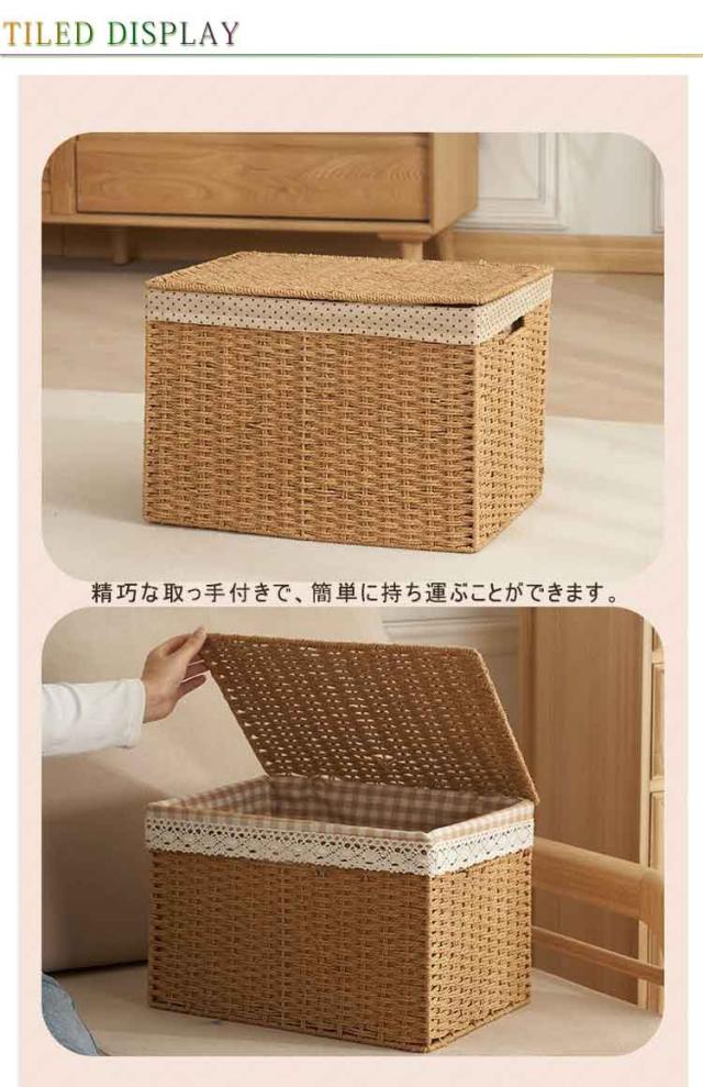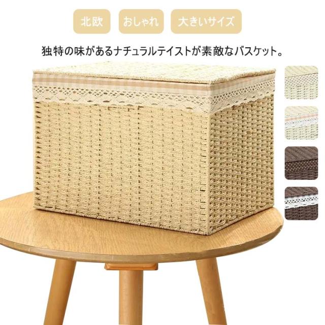 4サイズ展開 カゴ ランドリーバスケット ふた付き 収納カゴ 収納ボックス 籐 編み かごバスケット 布付き 持ち手 北欧 おしゃれ 大きいサイズ 籐ケース 洗濯かご タオル収納 オモチャ箱 天然素材