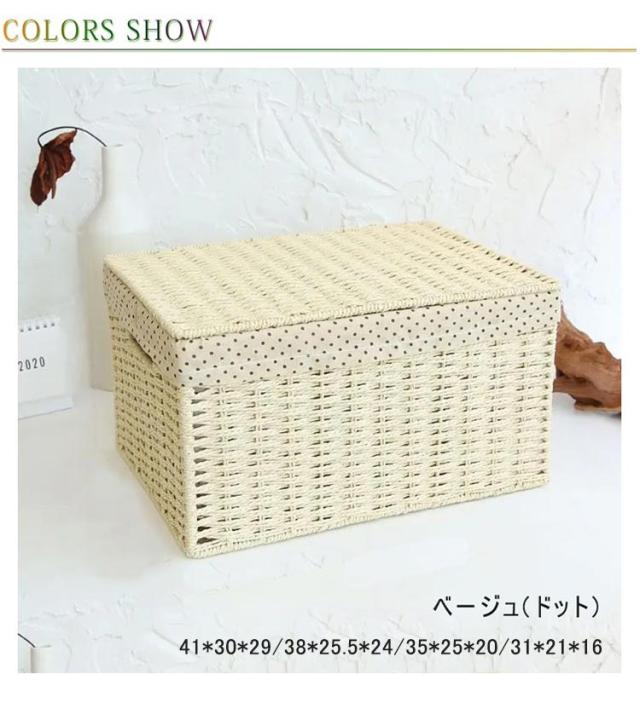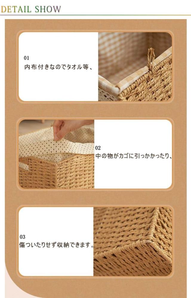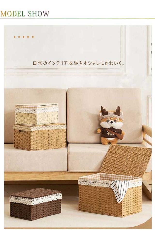 | 独特の味があるナチュラルテイストが素敵なバスケット。 日常のインテリア収納をオシャレにかわいく。 内布付きなのでタオル等、中の物がカゴに引っかかったり、傷ついたりせず収納できます。 精巧な取っ手付きで、簡単に持ち運ぶことができます。 インテリア収納として、おもちゃ箱として、工夫次第でいろんな使い方ができます。 | |