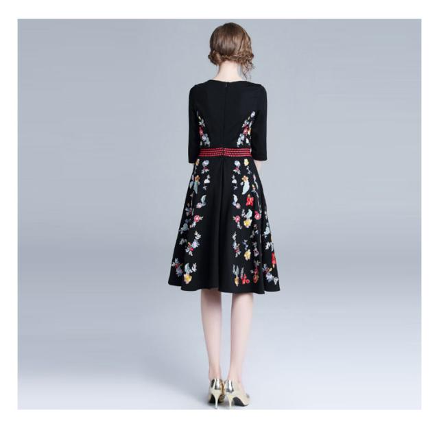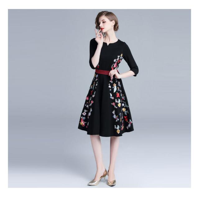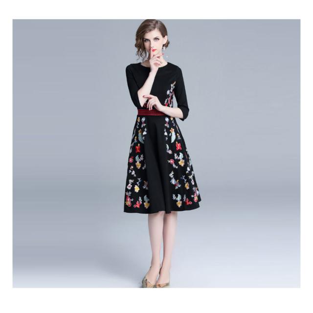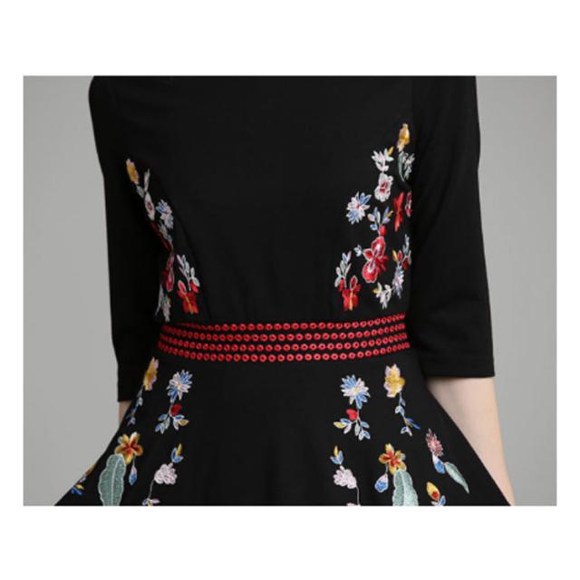 パーティードレス ミニ丈 膝丈 ワンピース 結婚式 ドレス 二次会 花嫁 袖あり ドレス 花柄 刺繍 パーティー 二次会 お呼ばれ 結婚式ワンピース ワンピ 大人 20代 30代 40代 フォーマル S M L XL XXL 黒 送料無料