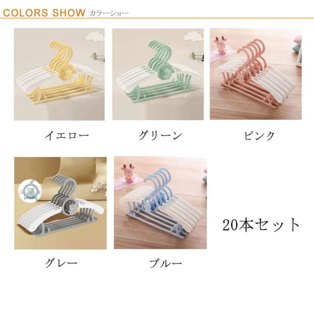 キッズハンガー ベビーハンガー 子供ハンガー ハンガー 子供用 キッズ ベビー 20本セット サイズ調整可 PP素材 洗濯 収納 子供服 かわいい 省スペース 大人 型崩れ防止 乾湿両用 すべらない 全5色!送料無料