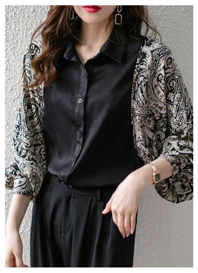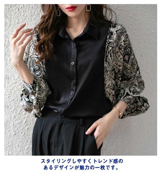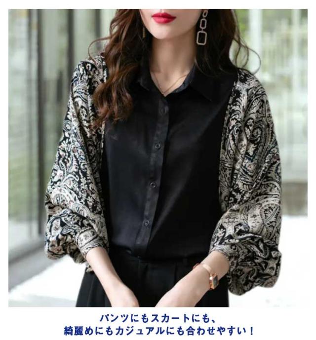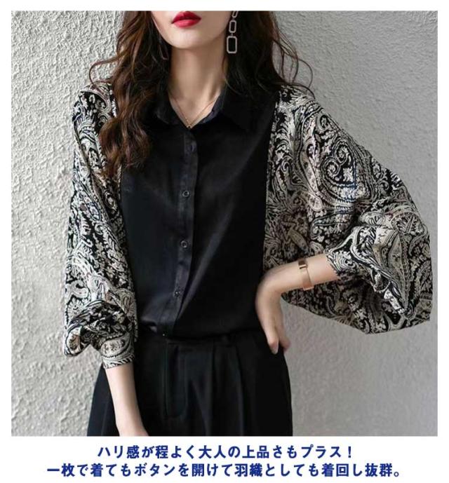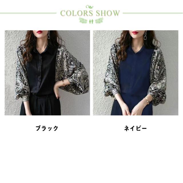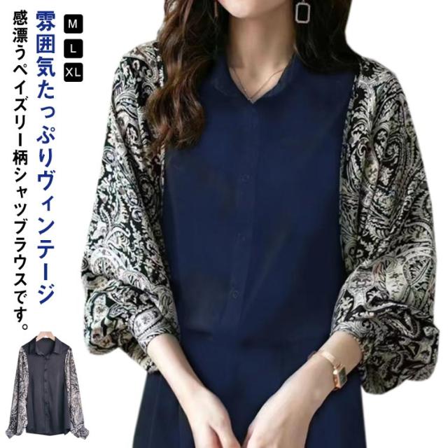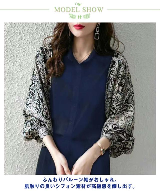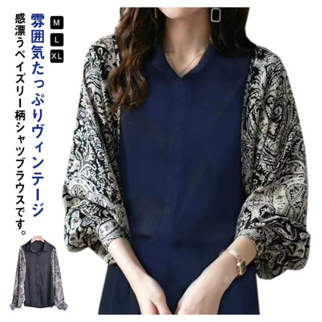 送料無料 ペイズリー柄 ブラウス レディース ボリューム袖 バルーン袖 シャツ ブラウス トップス カーデ チュニック 羽織 体型カバー レイヤード オーバーサイズ 無地 バンダナ柄 切り替え ぽわん袖 オフィス OL フォーマル ゆったり きれいめ