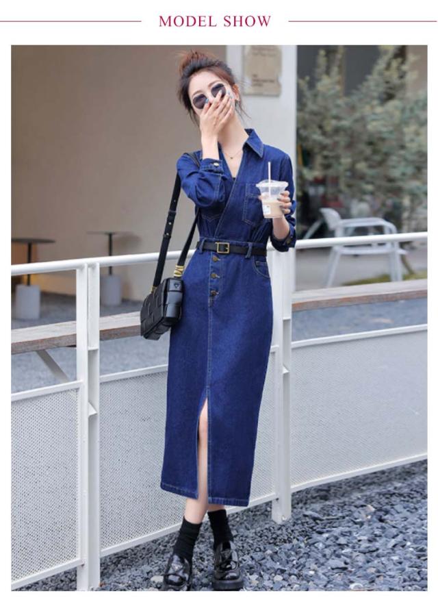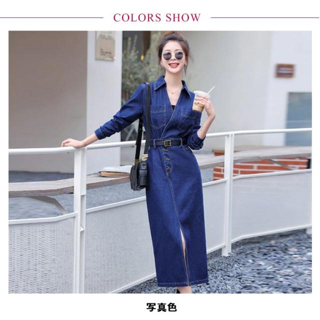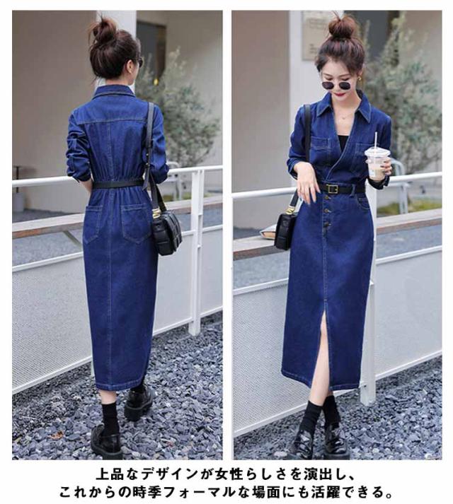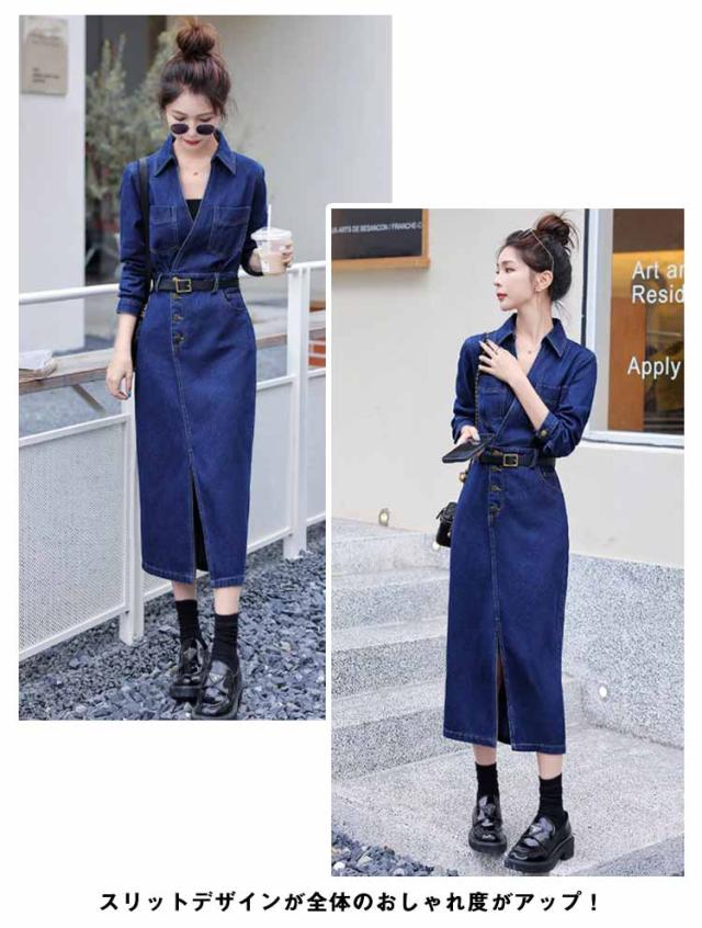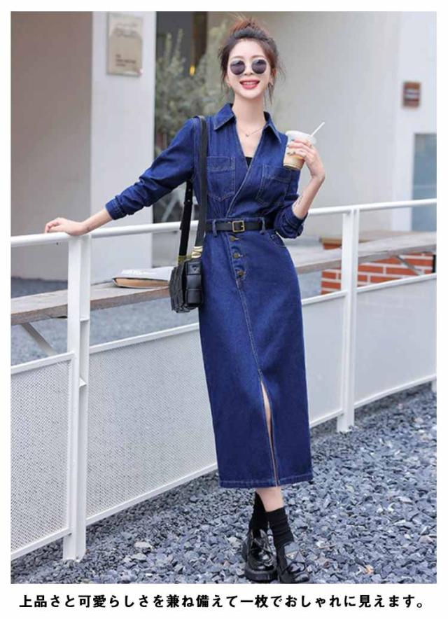 送料無料 デニムワンピース 春夏ワンピース 春デニム デニムマキシ マキシワンピース 大きいサイズ ベルト付き 夏ワンピ スリット ロング ホワイトデー
